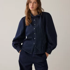 SUMMUM – Night Blue Denim Bowtie Blouse With Lurex